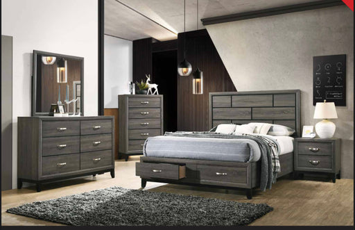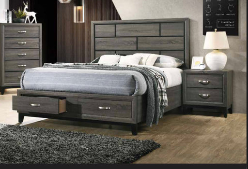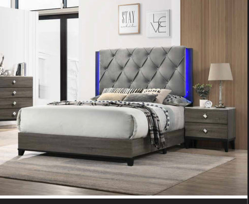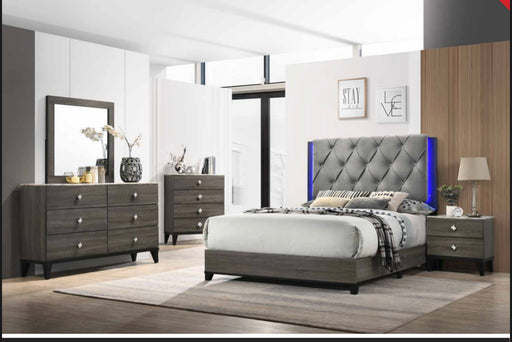 CLEGLAMOriginal price $469.00 - Original price $1,499.00Original price$469.00 - $1,499.00$469.00 - $1,499.00Current price $469.00| /In stock• Gray Faux Leather Upholstered Headboard• Horizontal Accented Pattern• Platinum Silver Finish• LED Border Accents• Two Storage Drawers on Footboar...