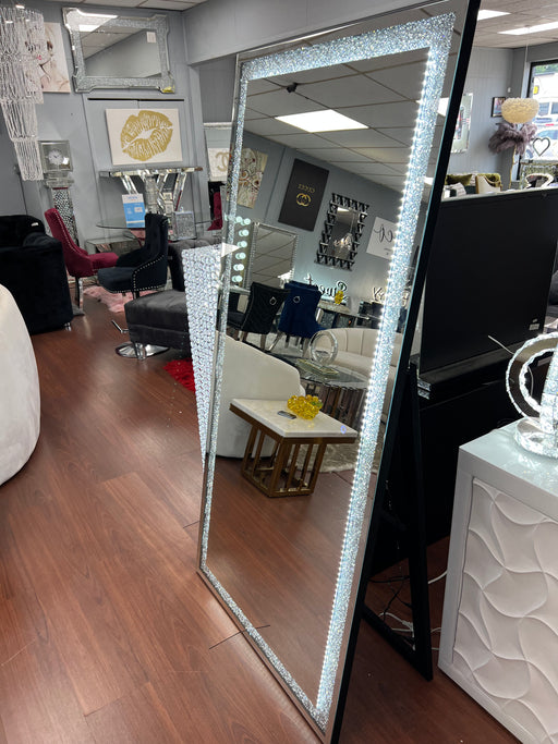 CLEGLAMOriginal price $999.99Original price $999.99 - Original price $999.99Original price $999.99Current price $699.99$699.99 - $699.99Current price $699.99| /In stockGlam style Hollywood diamond encrusted mirror with LED Lighting and kick stand! Dimensions: 34in W x 71in H